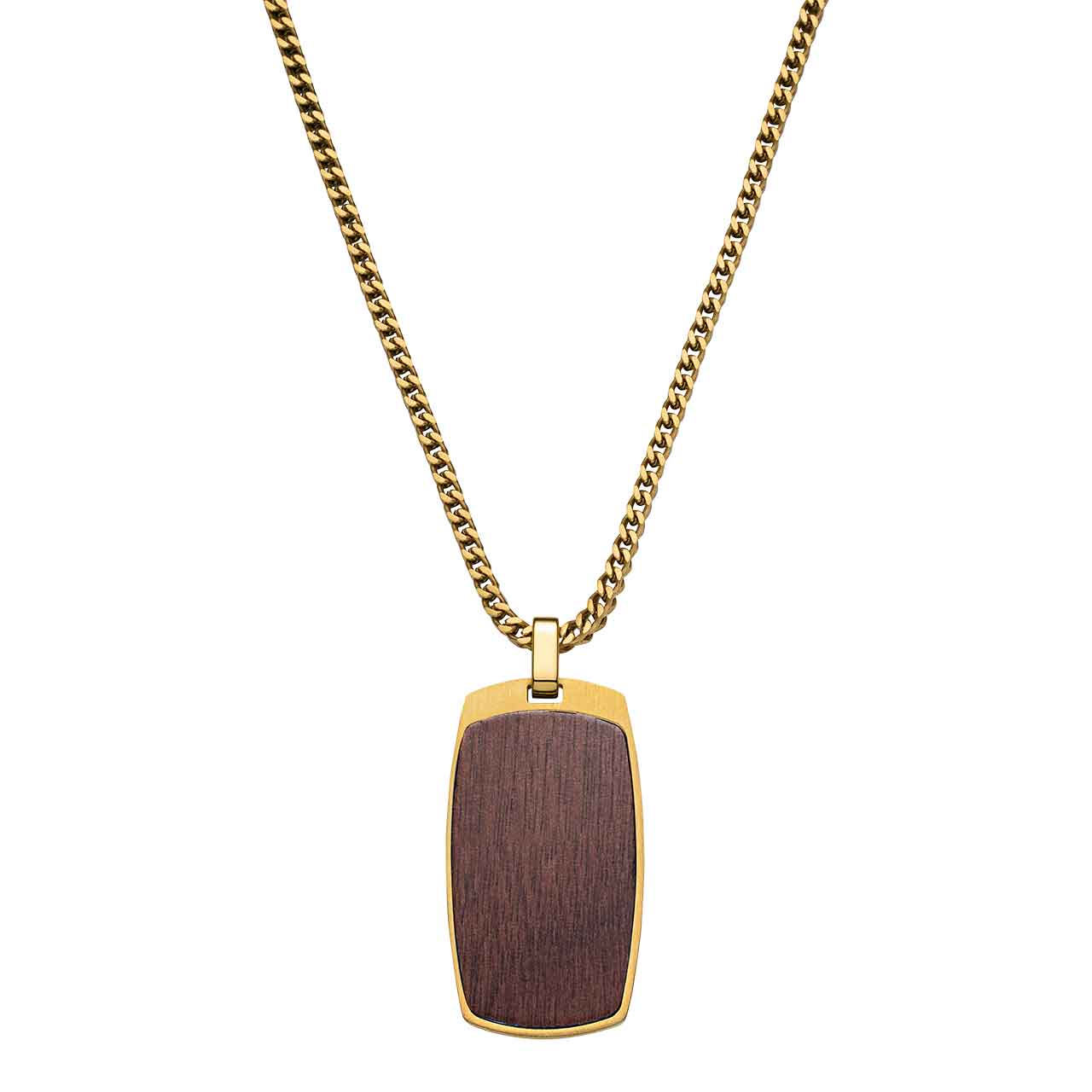 Pánsky náhrdelník Sebastian je elegantná kombinácia oceľovej retiazky v zlatej farbe a prívesku z orechového dreva. Tento jedinečný šperk symbolizuje harmonické spojenie muža a prírody.